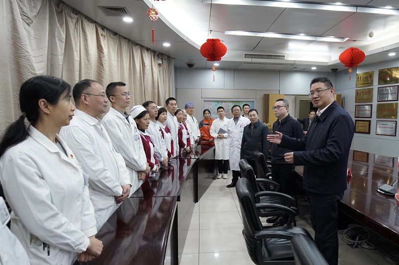 2月12日,省卫健委党组书记、主任,省中医药管理局局长杨闽红深入省、市医疗机构、村卫生室调研,走访慰问一线医务人员,送去节日问候和新春祝福,代表省卫健委向春节期间坚守工作岗位的广大医务人员及家属致以衷心感谢和崇高敬意。